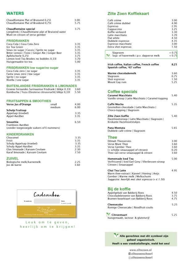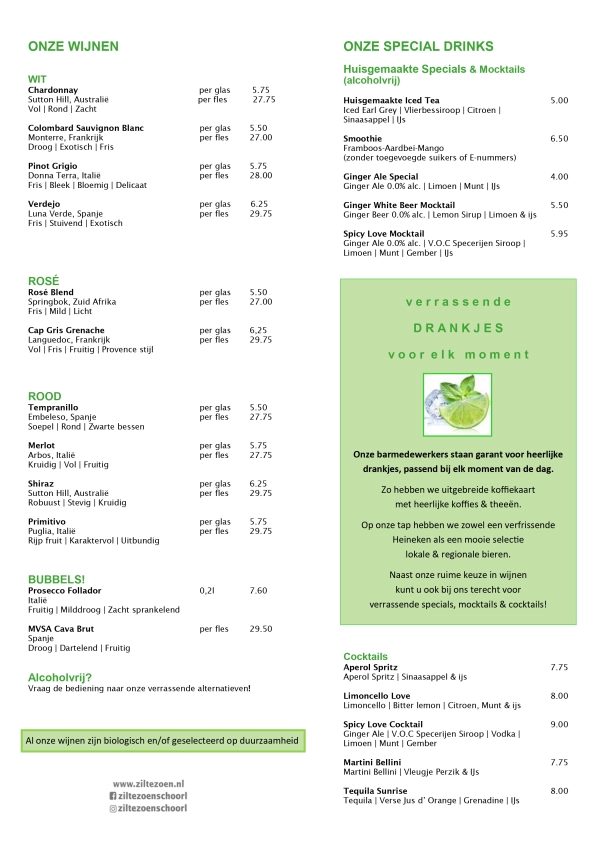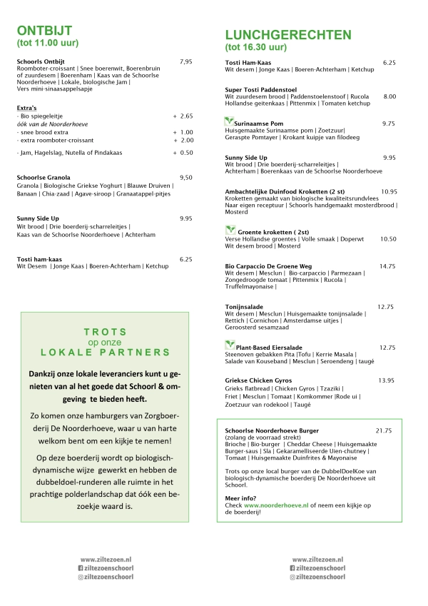 Zilte Zoen Schoorl, een laagdrempelig & modern restaurant, waar met respect voor mens en milieu een internationale menukaart wordt gevoerd...maar vooral gewerkt wordt met lokale en regionale producten!